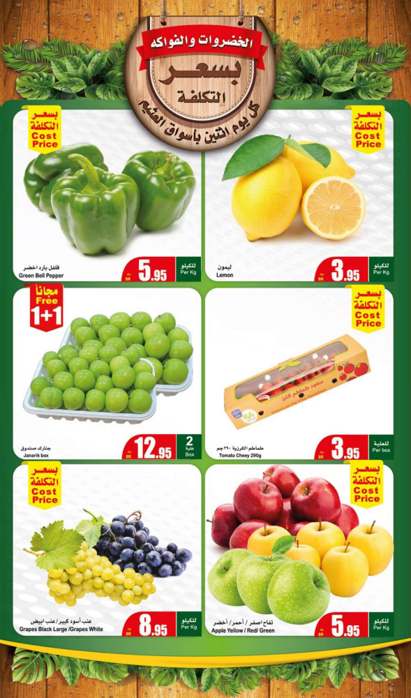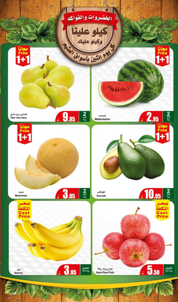 وتشمل عروض العثيم الطازج الاثنين 15-5-2023 الموافق 25 شوال 1444 كيلو عليك وكيلو علينا – عروض اليوم على السلع والمنتجات التالية :
