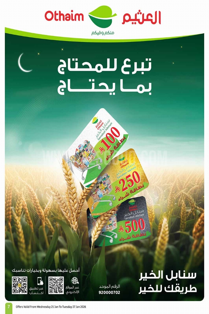 وتشمل عروض العثيم الأسبوعية 21 يناير 2026 الموافق 2 شعبان 1447 على السلع والمنتجات التالية :