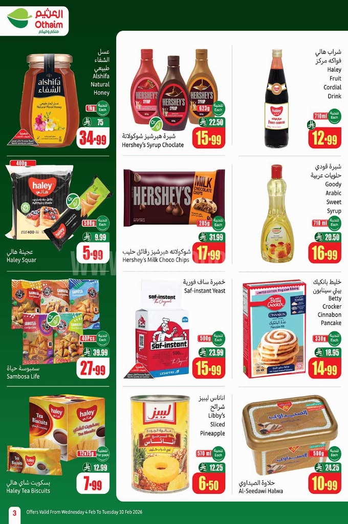 وتشمل عروض العثيم الأسبوعية 4 فبراير 2026 الموافق 16 شعبان 1447 على المنتجات التالية :
