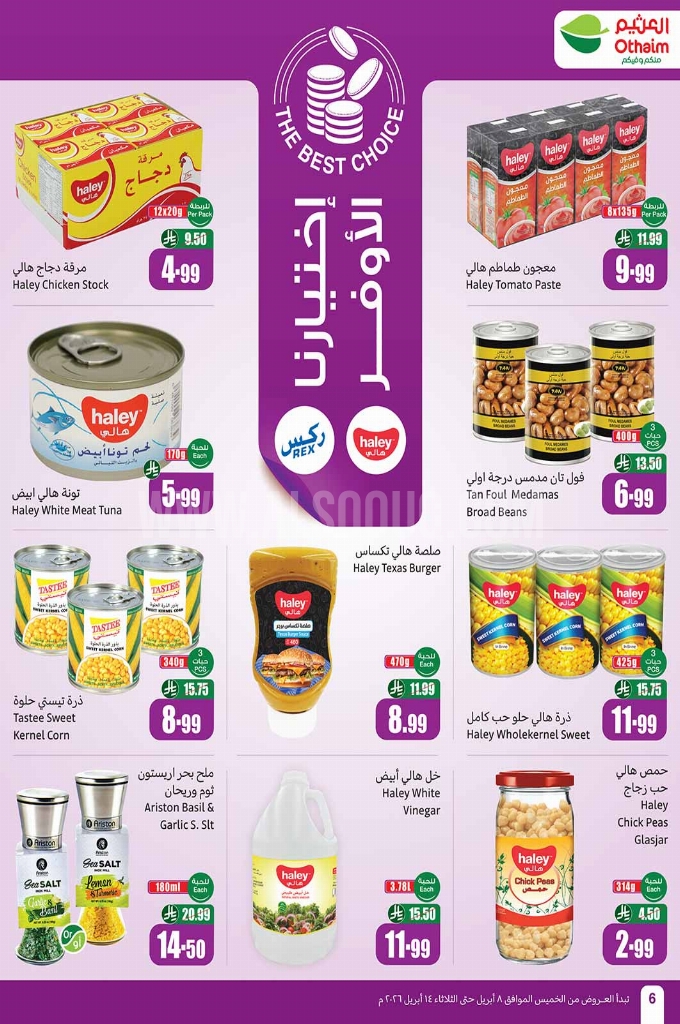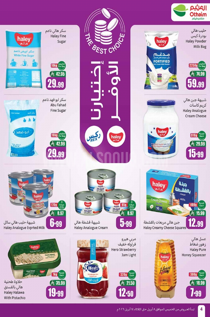 وتشمل عروض العثيم الأسبوعية 8 أبريل 2026 الموافق 20 شوال 1447 على السلع التالية :