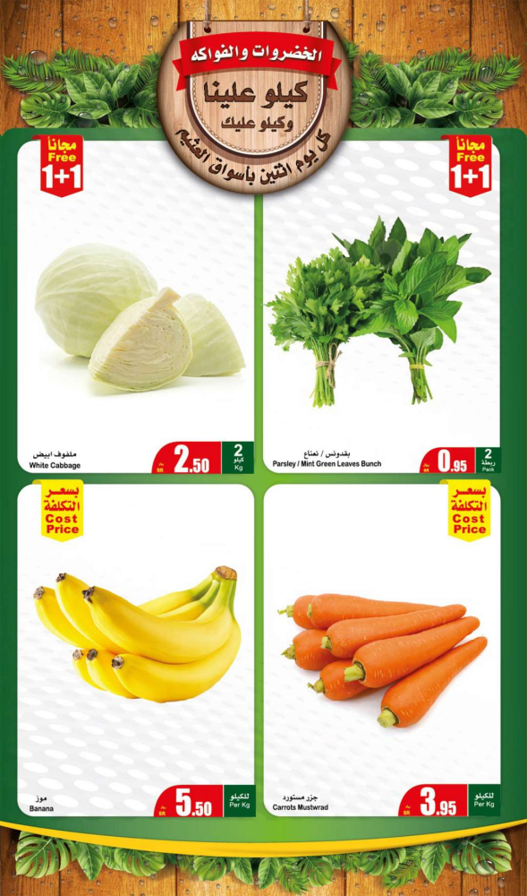 وتشمل عروض العثيم اليوم الاثنين 1 مايو 2023 الموافق 11 شوال 1444 مهرجان الطازج بتوفير 1+1 مجاناً – عروض اليوم على السلع التالية :