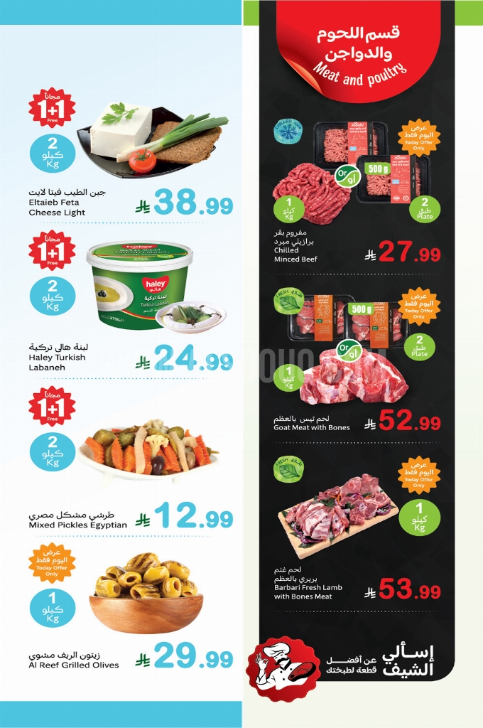 تجدون ضمن منتجات الاسبوع: دجاج تشيلي جوبي/كجم- عصير فواكه طازج 250 مل- أرز دجاج مندي للكيلو- برياني دجاج مالابار للكيلو- أرز دجاج بالزبدة للكيلو- دجاج بروستد نصف حبة- ستربس سمك للكيلو- دجاج مشوي بنكهات مختلفة- دجاج بالزبدة للكيلو- وإليكم الصور الآتية على موقع عروض