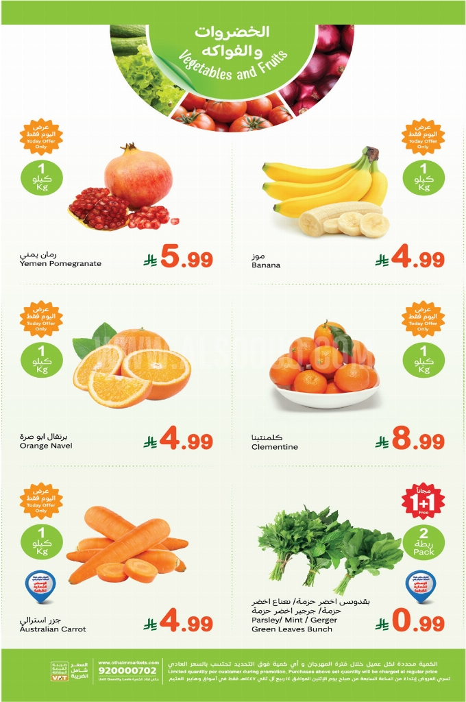 عروض العثيم اليوم الاثنين 6 أكتوبر 2025 الموافق 14 ربيع الآخر 1447 مهرجان الطازج بتوفير 1+1 مجاناً. كل يوم طازج كل يوم أوفر! عروض لا تقاوم على المنتجات الطازجة، الطعم الأصلي بأفضل سعر.