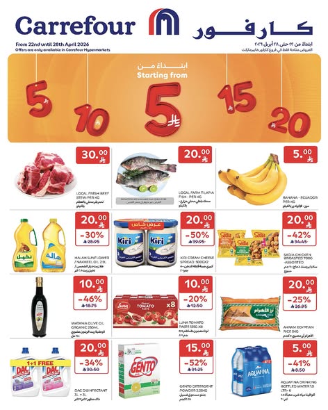 وتشمل عروض كارفور السعودية الأسبوعية 22 أبريل 2026 الموافق 5 ذو القعدة 1447 عروض الخمسات على السلع التالية :
