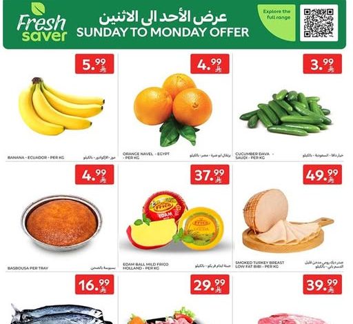 وتشمل عروض كارفور اليوم 15 مارس 2026 الموافق 26 رمضان 1447 عروض الأحد والاثنين على السلع التالية :