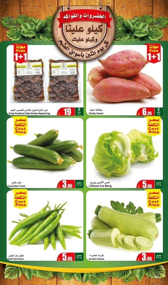 وتشمل عروض العثيم الطازج اليوم الاثنين 21-02-2022 الموافق 20-7-1443 مهرجان الطازج & كيلو عليك وكيلو علينا – عروض اليوم على السلع والمنتجات التالية :